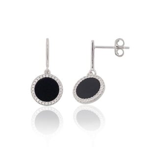 'Inglise' sulguriga hõbekõrverõngad #2203673(PRh-Gr)_CZ+ML-BK, Hõbe 925°, roodium (kate), Tsirkonid , Juveeliemail