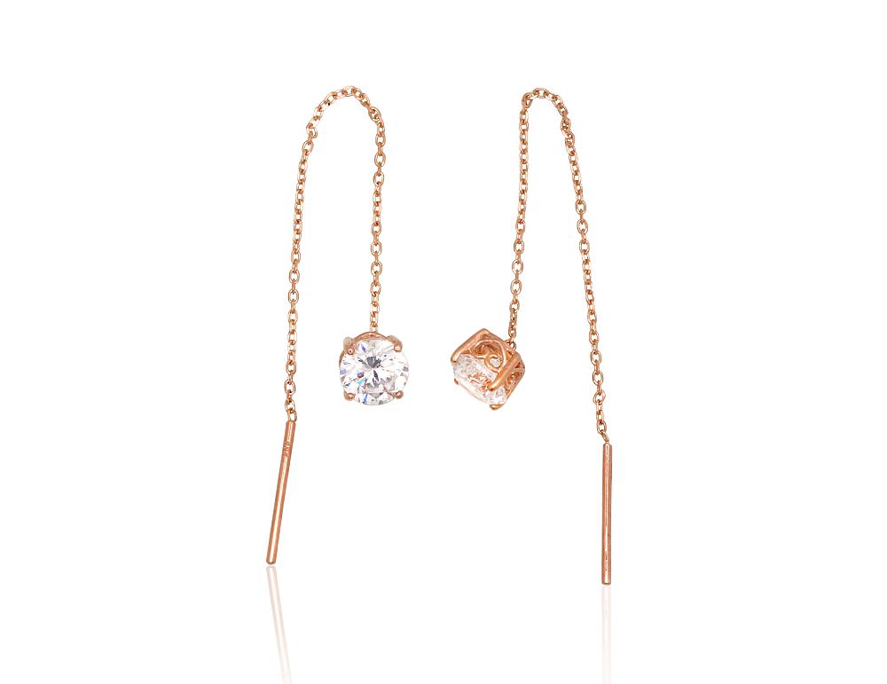 'Inglise' sulguriga hõbekõrverõngad #2202952(PAu-R)_CZ, Hõbe 925°, punane kuld (kate), Tsirkonid